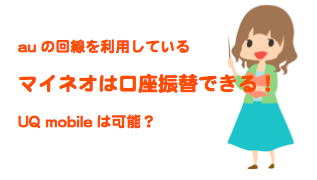 auからのりかえる格安SIMでは口座振替で支払いができるの?auのスマホからそのままのりかえられる便利なau回線のmineoやUQmobileですが、口座振替による支払いはできるのでしょうか?格安スマホでの支払いって基本的にクレジットカード...